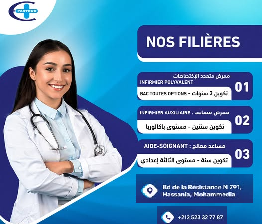 Adminnjuin 25, 2025Uncategorized بداية التسجيل بالنسبة للموسم المقبل بداية التسجيل بالنسبة للموسم المقبل مدرسة پاستور المتواجدة بمدينة المحمدية تعلن عن بدأ عملية التسجيل للموسم التكويني 2025/2026 للدراسات الشبه الطبية. ( باك + مستوى الباكالوريا + التاسعة إعدادي) للمزيد من المعلومات : 0523327787 Plus de détails